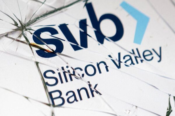 Silicon Valley Financial institution (SVB) emblem is seen by means of damaged glass on this image illustration taken March 16,…